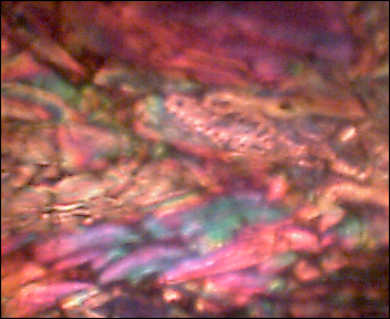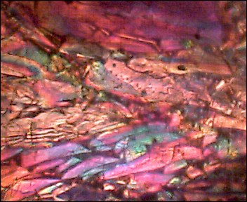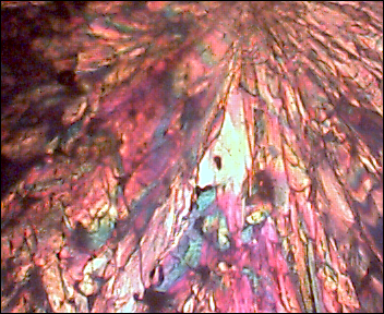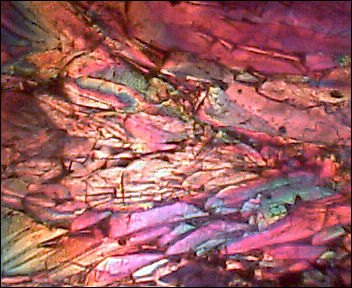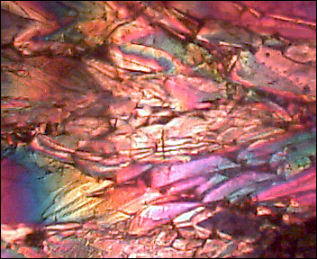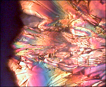 De kleurenpracht die we waarnemen onder de polarisatiemicroscoop heeft te maken met de "optische activiteit" van sucrose, hetgeen iedereen die organische chemie gehad heeft bekend in de oren moet klinken.