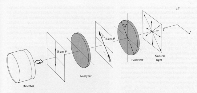 Licht is een elektromagnetisch golfverschijnsel waarbij de trillingsrichting loodrecht op de voortplantingsrichting staat. Een elektrische en een magnetische vector trillen daarbij loodrecht t.o.v. elkaar. In een 'normale' lichtbundel zijn tegelijkertijd alle trillingrichtingen aanwezig. Onder gepolariseerd licht verstaan we licht, waarbij in de bundel slechts een trillingsrichting aanwezig is. Gepolariseerd licht maakt je door een lichtbundel als het ware te filteren waardoor er nog slechts een enkele trillingsrichting overblijft. Door licht door een calciumcarbonaat kristal te laten vallen krijgt men licht met nog slechts twee trillingsrichtingen die loodrecht op elkaar staan.  Door nu van de eigenschappen van twee van zulke kristallen gebruik te maken kunnen we licht uitdoven (2 polaroid filters onder een rechte hoek op elkaar gelegd) of maximaliseren. Door nu de het tweede kristal te voorzien van een draaimechanisme met afleesmogelijkheid maken we een polarimeter, die ons in staat stelt om de draaiingshoek te bepalen. Schematisch weergegeven in onderstaande figuur.