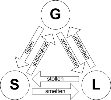 Sublimatie is het natuurkundige verschijnsel dat bepaalde stoffen onder bepaalde omstandigheden (temperatuur) van een gasvormige toestand direct over gaan tot vaste stof of visa-versa. De vloeibare fase wordt dus overgeslagen. overgeslagen. |