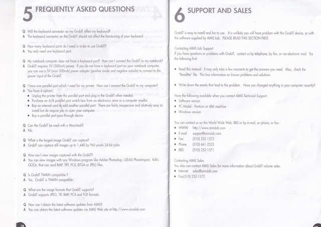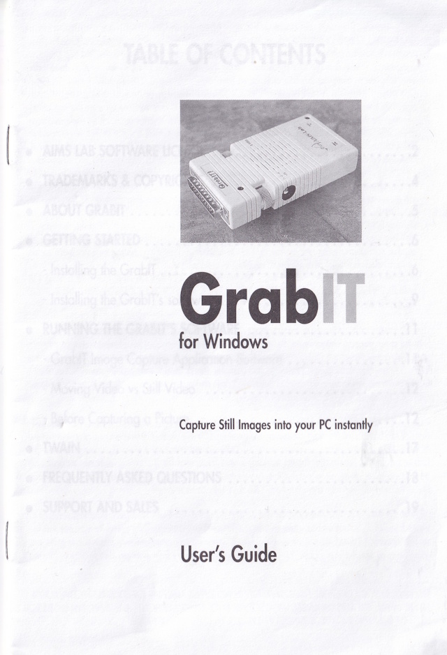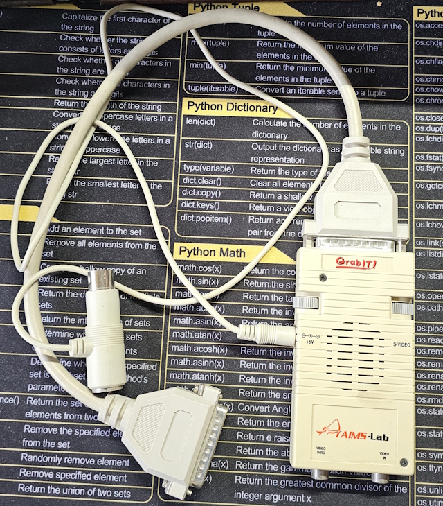 Connection: The original device typically connected to a PC via a parallel port and required a 5V power supply. Company: AIMS Lab Model: Grab-It Operating System: Windows 95 &