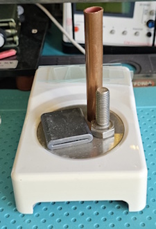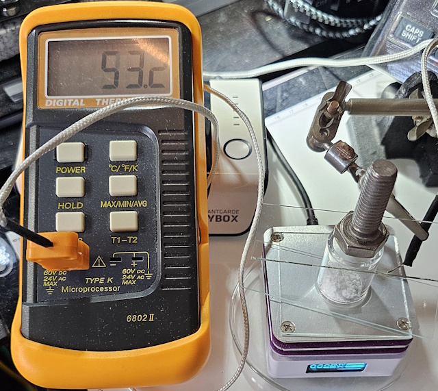 | Kristallen kweken via sublimatie probeer ik al langer. Om dat een beetje gecontroleerd te doen is niet echt gemakkelijk. Ik blijf daarom sleutelen aan mijn proefopstelling. Hieronder mijn laatste iteratie. |