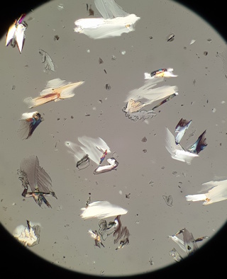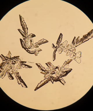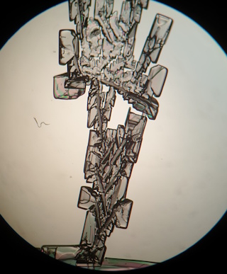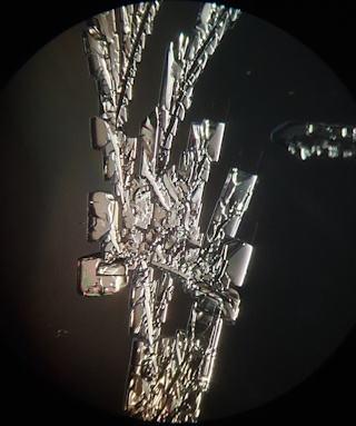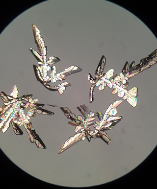Het hydraat van cafeïne (coffeïne) begint te sublimeren bij 178 °C. Insteltemperatuur: 205 °C Waterverdamping was zichtbaar bij dit preparaat. Kristalvorm: monoklien De gevormde kristallen zijn naaldvormig. |