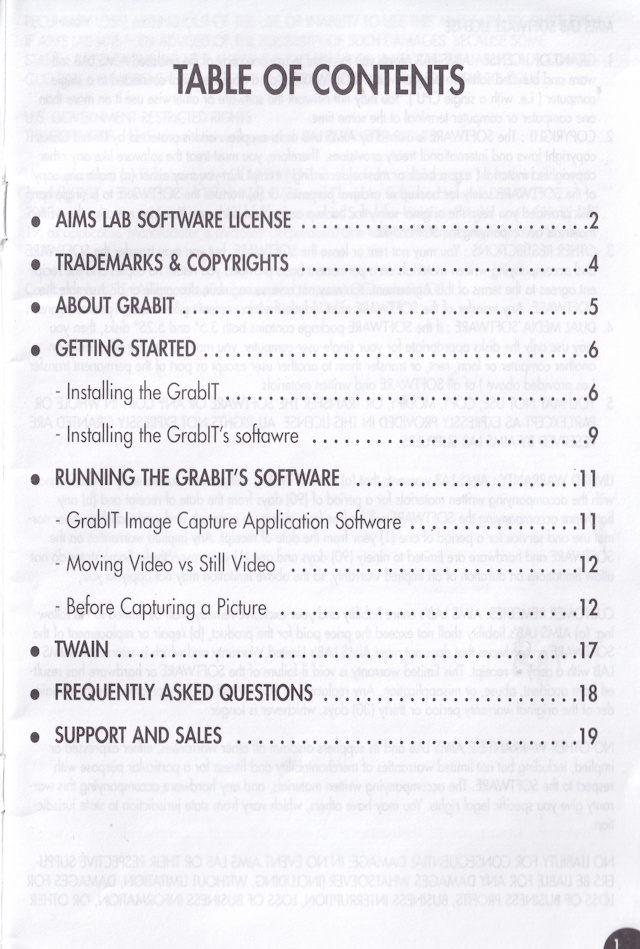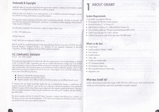 Connection: The original device typically connected to a PC via a parallel port and required a 5V power supply. Company: AIMS Lab Model: Grab-It Operating System: Windows 95 &